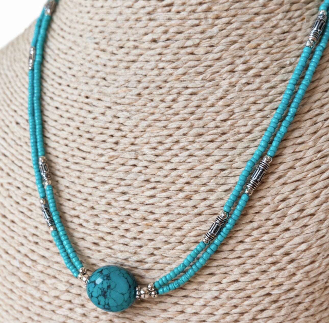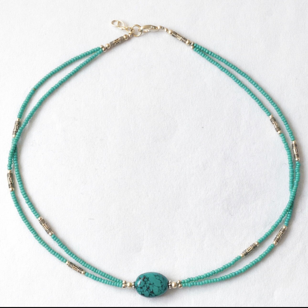 Collar Nepalés de Gemas Extra Finas de Dos Líneas - Colgante Turquesa y Lapislázuli