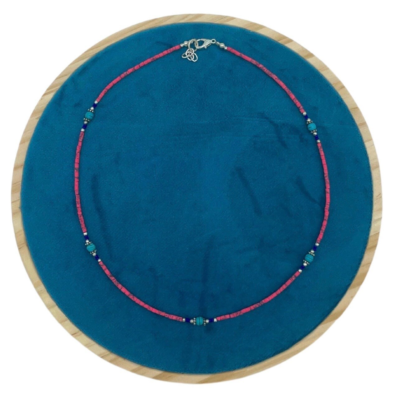 Collar Nepalés de Gemas Extra Finas - Cuentas de Coral Rosa y Turquesa
