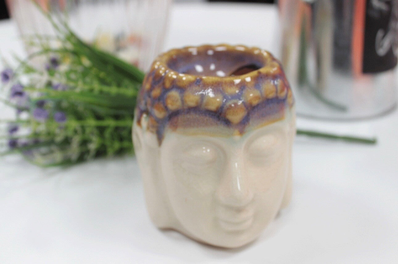 Quemador aceite Buda Cara- Marfil y Azul
